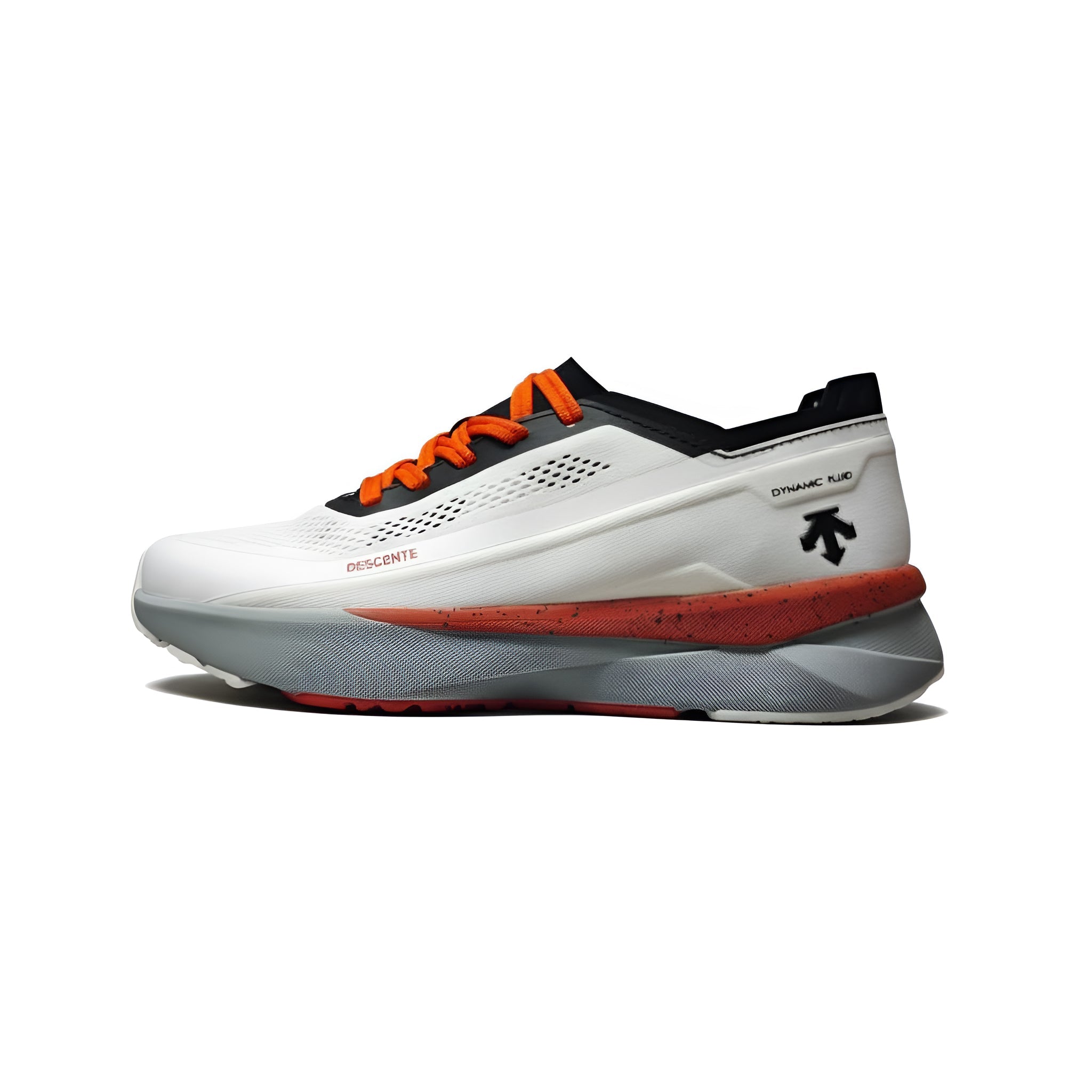 The Descente Enerzite Fluid Laced is an advanced running shoe engineered for stable, cushioned performance across various activities from daily runs to gym workouts. Its standout feature is the Dynamic Fluid strain-flow technology in the midsole, a material that remains soft during low-impact movements but instantly transitions to a temporary solid state upon hard impact, offering exceptional shock absorption and energy dispersion. This is paired with a supercritical foam midsole for excellent rebound, while a combination of a carbon core and TPU frame enhances torsional rigidity and arch stability, all wrapped in a functional, breathable engineered mesh upper inspired by Descente's high-tech ALLTERRAIN collection.
