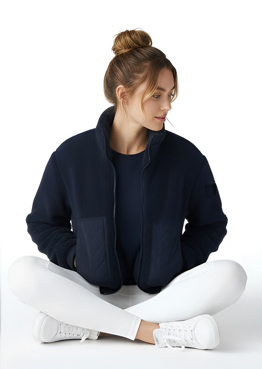 # TALA Sherpa Jacket Engineered for layering versatility, the TALA Sherpa Jacket combines premium sherpa fleece with a structured silhouette designed for both studio and street wear. The soft, insulating interior provides warmth without bulk, while the clean lines and refined fit align with TALA's signature athletic aesthetic. Four-way stretch fabrication ensures unrestricted movement through yoga, training, and everyday activities. Perfect as a standalone piece or layered over performance tops, this jacket transitions seamlessly across your activewear wardrobe.